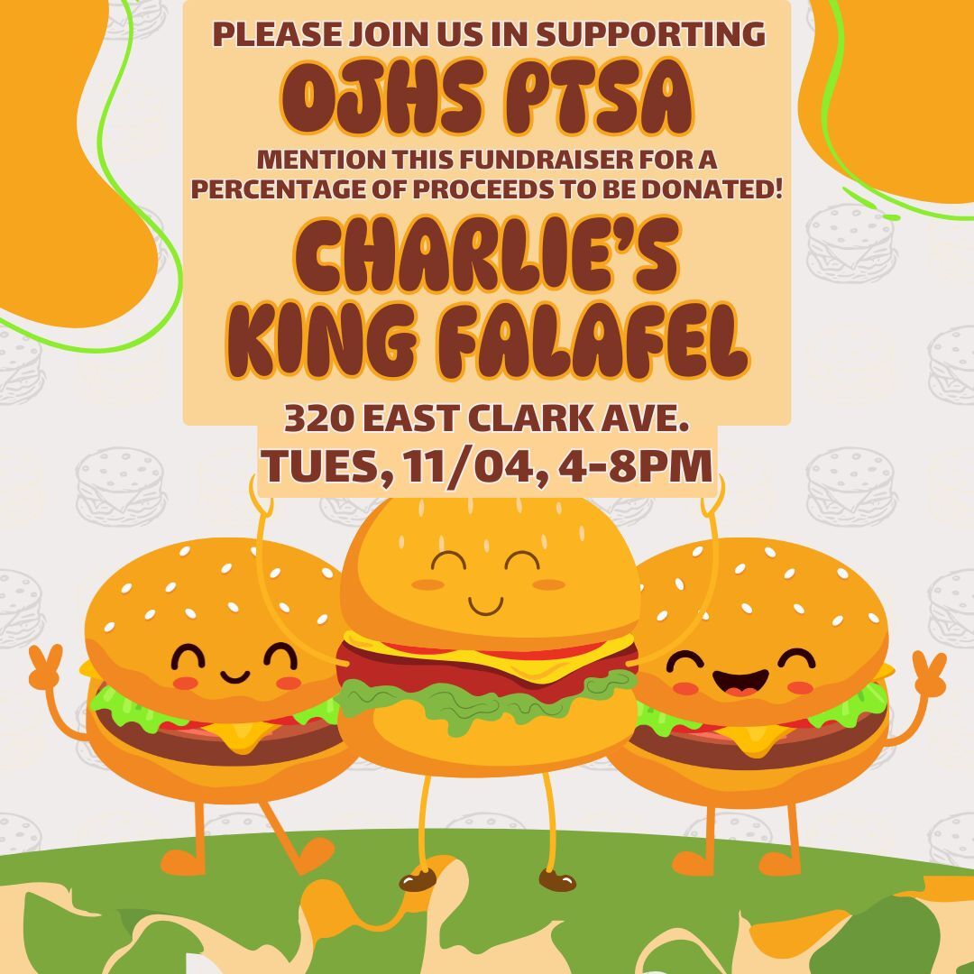 OJHS PTSA Charlies King Falafel Fundraiser on Tuesday, November 4